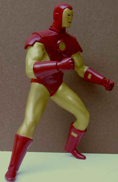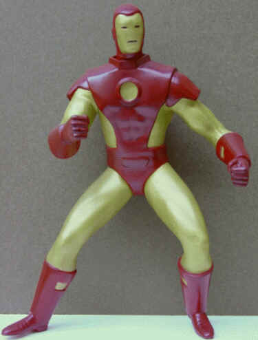 Lousy photography ! First off, I removed about ½ inch from the back waist and filled the stomach in with Aves Apoxie to make up the gap. The original stance made him look like he was looking for quarters on the sidewalk. This straightened the pose by about 35%. Secondly, the armour was raised out by about 1/8th inch, also with Aves Apoxie. The picture doesn't do justice to the 9 or 10 coats of semi-gloss. I didn't want to over do the gloss and make him look like he just came off the showroom floor. Paints used: